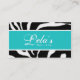 Animal business card with trendy zebra print great for a nail / tanning / hair salon or spa, massage therapy or the beauty industry or any cosmetologist / cosmetology or a florist or wedding planner.