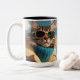 A cute coffee mug with a playful and humourous vibe. The mug features a cartoon-like image of a cat looking relaxed and cool, wearing sunglasses. The cat seems carefree, as if it's simply enjoying the sunshine. The combination of the cat and the sunglasses gives the mug a modern and trendy feel, perfect for cat lovers who want to add a bit of fun to their daily coffee moments. The colours on the mug are bright and cheerful, making it a fun and eye-catching addition to your kitchenware.