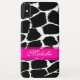 A bold mono and hot pink coloured animal print iphone case. This original pattern by Sarah Trett, is based on the patterning found on a giraffe. A great case for outgoing girls, bold ladies and trendy teens. With this bright colour finding your phone will be easy. Customise with the name of your choice currently reads Michelle.