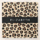 Animal Print, Brown Leopard, Hearts, Your Name Glass Coaster