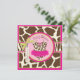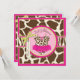 Wild and fun cheetah print jumper tutu on clothesline on an animal print background and 3D-look bow and ribbon for a girl baby shower invitation card. Colours are pinks, greens, and browns.