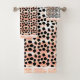 Towel Set On The Rocks Blush Pink and Black. Designer towel set in tumble rocks with a background of muted pinks, rose, white and cream. Guest bath, funky home décor, shower present, or just because you like the look of it yourself! Check out the matching towel in black and blue.