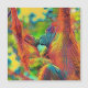 Colorful graphic portrait of an orang utan mom kissing her baby