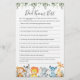 Jungle animals themed baby shower dad knows best game card features a watercolor safari jungle animals illustration and watercolor greenery eucalyptus garland and elegant handwritten style font.