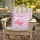 Outdoor pillow with chevron stripes of pink and white with a cute pink chevron striped fox!