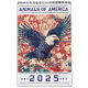 Calendar with AI generated art featuring American animal such as cougar, buffalo, rattlesnake and eagle. The striking animal portraits are mixed with elements of the United States flag.