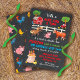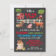 Super mignon animaux de ferme avec amusante fonts d'anniversaire invitation fête d'anniversaire. Idéal pour un garçon ou une fille ! Comprend un cochon, une vache, un cheval et un poulet bébé sur un arrière - plan de tableau noir.