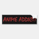 Anime Addict Bumper Stickers! Buy the funny anime fan joke “Anime Addict“on cool bumper stickers. “Anime Addict” a fun novelty anime joke bumper sticker for Japanese anime geeks who can’t get enough of their favourite anime shows. These anime otaku bumper stickers with the cool joke “Anime Addict" are great for your car, laptop, locker or anywhere you can think of! Made of durable 4mm thick vinyl these “Anime Addict” bumper stickers won't peel off! Buy your own funny otaku “Anime Addict” bumper sticker today! And when you buy your fun “Anime Addict” bumper sticker, remember to check out the great bulk purchase discount offer as well: the more “Anime Addict” bumper stickers you buy, the more money you’ll save!