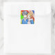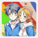 Cute anime boy and girl in blue and red with a little heart romantic flirty stickers celebrating love. Retro Pop background.