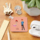 This square keychain features a charming anime-style illustration of a young couple against a solid peach-pink background. The girl has short red and green hair and is wearing a flowing white high-low dress with a pink lining and purple heels, posing with her arms crossed. The boy has spiky orange hair, wears a blue t-shirt, black pants, and blue sneakers, standing with his hands in his pockets. The image is printed on a durable square material, attached to a standard metal split ring and chain for easy attachment to keys or bags.