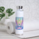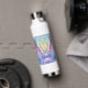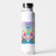 Personalized water bottle for a little girl. Pretty purple, pink and blue anime girl and axolotl.