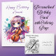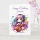 Personalized girl's birthday card. Adorable cartoon anime girl playing a cello.