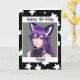Cute purple and black anime girl with fox ears personalized birthday card.