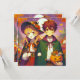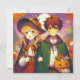 Halloween party invitations for kid's party. Little anime kids in costumes with pumpkins full of candy.
