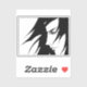 Anime sticker with a manga and anime style black and white illustration of a male character's face with wind blown hair.