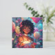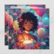 Pretty personalized birthday girl invitation. Cute graphics of a beautiful African-American anime girl and cute curly hair surrounded by pink, purple and blue balloons and flowers. These are cute for a teen or pre-teen girl.