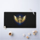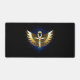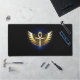 Chevalier égyptien doré aux ailes tressées et brillantes sur un arrière - plan noir. Symbole magique.