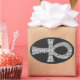 A simple and bold ankh design, with a patern of decorative swirls.