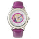 Watch is very cute--daughter likes the design on the face. Seems like good quality (we'll see how it holds up as she wears it). Very pretty design on watch face. I like that the hour and minute hands are marked, but difficult to see as type is very small (that might be my old eyes).