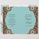 A lovely and romantic wedding program for the bride that leans to the contemporary with a tiny touch of tradition. The white damask pattern has a modern lace feel and the quatrefoil centre design is off-centre and fun! Aqua blue, chocolate brown and white is a very lovely colour combination. This invitation can be created in any colour combination you would like. All we need is a colour sample(s) and we're happy to set it up for you, just email us. PAPER RECOMMENDATION: Unless you are going to have these professionally scored and folded at a print shop, I recommend the value paper selection which is matte finish. The basic paper is high gloss outside and can crack with dark colours at the fold spot.