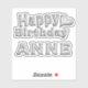 A very nice stylish personalized sticker / sticker for Anne. The name as text and happy Birthday is available in different sizes and also in transparent. Perfect for you, your best friend, wife, sister, mother, aunt, grandma, fiancée, cousin, partner or whatever you want to surprise with a personal and individual gift. Please check our shop for more products as a gift idea with this name. Here you will find many more personalized products and designs.