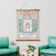 This Anne of Green Gables tapestry features our beloved Anne peeking out of a window with green shutters. There is a banner below her window that says Happy Birthday. Colours include, sage green, pale blue, orange, pink and white.