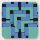 Annex hard plastic coasters. Annex is an abstract design created by Vexenwraith and consists of blue and turquoise blocks on a black background.