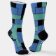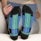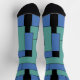 Annex socks. Annex is an abstract design created by Vexenwraith and consists of turquoise and blue blocks on a black background.