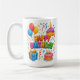Laisse les confettis voler ! Cette tasse d'anniversaire amusante et festive déborde de ballons, de gâteaux, de cadeaux et de serpentins, le tout autour d'un texte audacieux et de couleur arc-en-ciel "Joyeux anniversaire". Conçu par Callum AI pour apporter la joie, la couleur et les sourires alimentés par les gâteaux à toute célébration d'anniversaire.