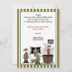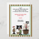 Pirate anniversaire de enfant invitation de la fête qui comprend un bateau pirate avec Crull et Cross Bones Pirate Drapeau, un coffre au trésor de pirate et quelques petits pirates mignons, l'un avec un crochet et un perroquet sur son bras, l'autre avec une carte au trésor et une épée et tous avec des écailles de oeil. Il y a une bordure à rayures avec des rayures brunes et blanches. Un design adorable, parfait pour n'importe quel enfant, qui a choisi un thème pirate pour sa fête. Forme rectangulaire. Couleurs : Noir, marron, rouge, blanc, vert, bleu, beige.