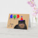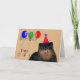 Pomeranian collant la langue utilisant un casquette de partie avec des ballons