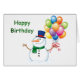 mignon bonhomme de neige d'anniversaire d'hiver tenant des ballons avec le texte...Joyeux anniversaire