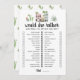 Achetez ce jeu à thème de voyage modifiable et profitez de la haute qualité de la carte Will She Plutôt pour votre événement! C'est un modèle de jeu, Vous pouvez changer les questions comme vous le souhaitez! Aquarelle de voyage thème design.