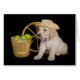 Jouet Golden Retriever avec pommes vertes et roue en bois pour anniversaire général.