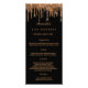 Carte menu fête d'anniversaire. Personnalisez et ajoutez un nom, un âge, une date et le menu. Un arrière - plan noir chic, décoré de parties scintillant en faux or foncé. Lettres de couleur dorée. Retour : ajoutez une photo de la fille d'anniversaire, des faits amusants et des noms.