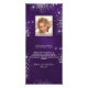 Carte menu fête d'anniversaire. Personnalisez et ajoutez un nom, un âge, une date et le menu. Un arrière - plan violet, décoré avec de la poussière de parties scintillant en faux argent. La couleur violette est inégale. Lettres de couleur blanche. Retour : ajoutez une photo de la fille d'anniversaire, des faits amusants et des noms.