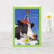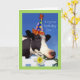 Carte de voeux d'anniversaire mignonne et drôle pour un fils. Une vache portant un casquette de fête et mangeant une jonquille est sur la couverture. Copyright © Shoaff Ballanger Studios, 2022.