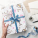 This fun gift wrap features a repeating pattern of celebration element graphics including champagne glasses, streamers and hearts in soft pink and gold. Suitable for anniversaries or any romantic occasion. Search ID723 to see other colour options and products with this design.