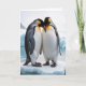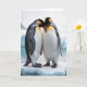 Two penguins stand closely together on a small ice floe surrounded by icy waters and distant glaciers for wedding annviersary.