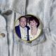 Happy Anniversary Circle Photo Template with Gold Frame. Button/Lapel Pin is ready to customize. Change the photo and/or change the text.
