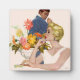 Artist:Lynn Buckham | Man smoking a cigarette looking at a woman sitting by a floral arrangement
