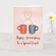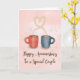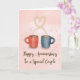 A hand drawn ink and watercolor painting of two steaming mugs of coffee. The steam is forming a heart between them. Cute and modern way to say happy anniversary to a special couple.