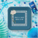 Elegant square white lace frame with white hydrangea bridal bouquet on blue background.