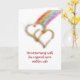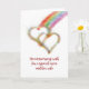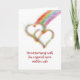 This unique greeting card celebrates the wedding anniversary of a special niece and her wife with a colourful airbrush effect of a rainbow ending in two interlocking hearts.