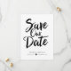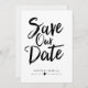 Cette conception présente les mots "save the date" en caractères gras noirs manuscrits. Les noms des conjoints et les détails du mariage sont affichés ci-dessous et peuvent être personnalisés.