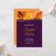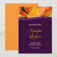 Une photographie florale orange sur fond violet donne à ce faire-part une touche unique et originale.