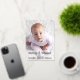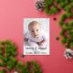 Élégante Joyeuse & Bénie 4 Collage photo Annonce de naissance de Noël avec accents de feuille de rose or véritable. Pratique Carte de Fêtes et Annonce de naissance 2 en 1.