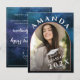 Carte de faire-part de remise de diplôme pour la promotion 2023. Annoncez fièrement votre diplômé de la promotion 2023 en envoyant ces cartes d'invitation ou de faire-part de remise de diplôme simples et mignonnes avec photo. Le design dispose d'un espace pour une photo sur le recto de la carte avec le nom du diplômé écrit en élégante police. Le design a un fond de galaxie violet et vert. Le verso de la carte contient tous les détails de l'invitation à la fête de remise de diplôme. Pour toute personnalisation supplémentaire, n'hésitez pas à me contacter à l'adresse mypaperlve2021@gmail.com
