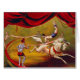 Poster vintage annonçant un cirque avec des interprètes dans un anneau. Un acrobate exécute sur un cheval tandis que les clowns tiennent des bannières. (Des 1875) lithographies du 19ème siècle originale par Gibson et Cie. Tous droits réservés art 2013 d'aumônier de ©