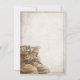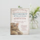 Announcement of retirement with old worn and weathered lace-up boots in vintage style. Gender-related text, the year, the honorary text, the date, the time, the place of celebration and RSVP can be customized.